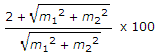 Efficiency of general AM signal with em = E1 cos ω1t + E2 cos ω2 tj ec = Ec cos ωct; E1 cos ω1t with modulation index m2 is __________ .