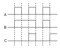 figure shows three pulse train inputs to a 3-input AND gate. Assuming positive logic, the output signal obtained in figure would be