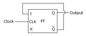 For the circuit shown in the figure, what is the frequency of the output Q?