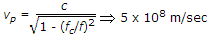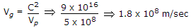 A wave is propagated in a waveguide at frequency of 9 GHz and separation is 2 cm between walls Calculate group velocity for dominant mode.