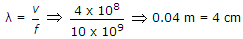 A 10 GHz signal propagates in a waveguide with a phase velocity of 4 x 108 m/s. If the signal produces standing wave in the guide, then the distance between successive minimal will be