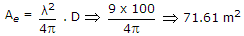 Maximum effective aperture of an antenna which is operating at a wavelength of 3 meters and has a directivity of 100