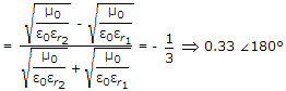 A uniform plane wave travelling in air is incident on the plane boundary between air and another dielectric medium with εr = 4. The reflection coefficient for the normal incidence is