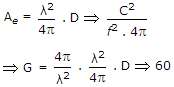 Gain of an antenna with a circular aperture of diameter 4 meter at frequency of 10 GHz, with directivity 60