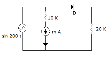 The diode and the moving coil milliammeter of figure are assumed to be ideal. The meter reading is