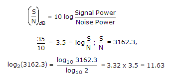 A TV picture is to be transmitted over a channel of 6 MHz bandwidth at a 35 dB S/N ratio. The capacity of the channel is