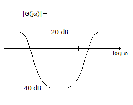 The magnitude plot of a rational transfer function G(s) with real coefficients is shown below. Which of the following compensators has such a magnitude plot?