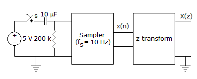 7. In the following network, the switch is closed at t = 0- and the sampling starts from t = 0. The sampling frequency is 10Hz.