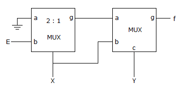 18. Consider the circuit shown below of 2 : 1 MUX is given by the function g = ac + bc