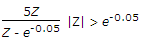 |z| < e-0.05