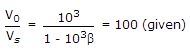 If the closed loop gain of above amplifier is + 100, the value of β will be