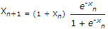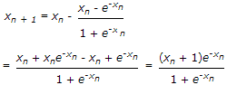 The recursion relation to solve x = e-x using Newton Raphson method is