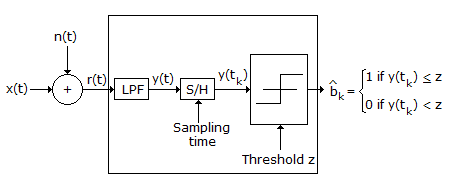 Where Nk represents the noise sample value. The noise sample has a probability density function, PNk(n) = 0.5ae-a|n| (This has mean zero and variance 2/a2). Assume transmitted bits to be equiprobable and threshold z is set to a/2 = 10-6 V.