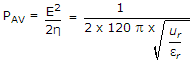 3. The electric field component of a time harmonic plane EM wave travelling in a non magnetic lossless dielectric medium has an amplitude of 1 V/m. If the relative permittivity of the medium is 4, the magnitude of the time-average power density vector (in W/m2) is