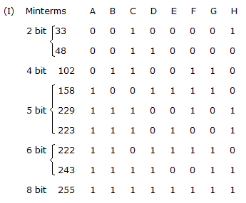 (33, 48, 102, 158, 222, 229, 233, 243, 255); then the __________ and __________ minterms are grouped together into dual and variable __________ is reduced using the dual -