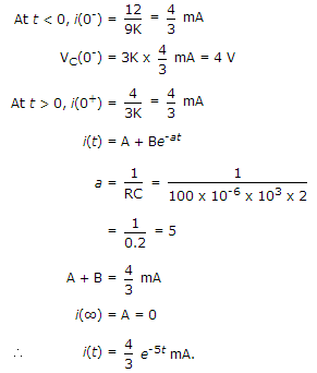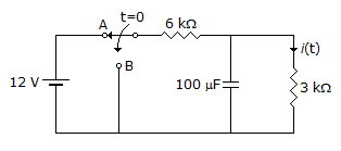 Calculate i(t) for t ≥ 0 assuming the switch has been in position A for a long time. At t = 0, the switch is moved to position B.
