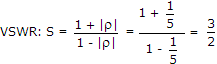 A generator of 50 Ω internal impedance and operating at 1 GHz feeds a 75 Ω load via a coaxial line of characteristic impedance 50 Ω. The VSWR on the feed line is