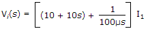 For the circuit shown in figure below, the initial conditions are zero, its transfer function H(s) =