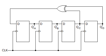 Figure below shows D type Flip-Flops connected as shift register, then outputs QD, QC, QB, QA are given by: