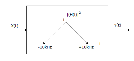 A white noise X(t) with two-sided power spectral density 1 x 10-10 W/Hz is input to a filter whose magnitude squared response is shown below.