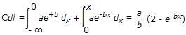 Consider the probability density f(x) = ae-b|x| where x is a random variable whose allowable values range from x = - ∞ to x = + ∞. The Cdf (Cumulative distribution function) for x ≥ 0 is :