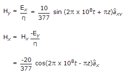 The electric field of uniform plane wave is given by E = 20 sin (2 p x 108t- pz)