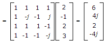 4 point DFT for x(n) = {2, - 1, 2, 3} is