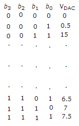 2n-2 Volts, where b3 (MSB), b2, b1 and b0 (LSB) are the counter outputs. The counter starts from the clear state