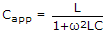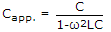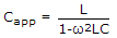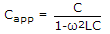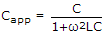 The apparent capacitance at a high angular frequency ω of an air cored capacitor having capacitance C and inductance L is given by