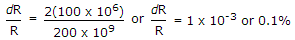 A resistance wire strain gauge has gauge factor 2. If stress is 100 mega newton/m2 and Young's modulus is 200 giga newton/ m2, the percentage change in gauge resistance due to stress is