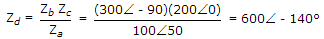 In figure, Za = 100∠50°, Zb = 300∠-90° and Zc = 200∠0°. For balanced condition, Zd will be