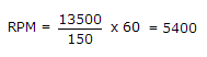 A variable reluctance type tachometer has 150 teeth on rotor. The counter records 13500 pulse/sec. The rotational speed is