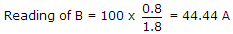 Two ammeters A and B are connected in parallel in a circuit carrying 100 A. Their resistances are 0.8 mΩ. Their readings will be.