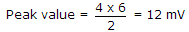 A sinusoidal signal is measured by CRO. The scale is set at 4 mV/cm. If vertical distance between positive and negative peaks is 6 cm, the peak value of ac signal is
