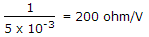 The sensitivity of a voltmeter using 0-5 mA meter movement is