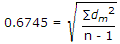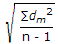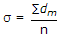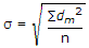 The standard deviation σ in terms of n observations having deviations from mean dm can be written as