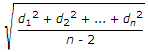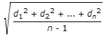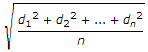 If d1, d2, ..., dn are n individual deviations, the standard deviation is