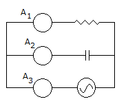 In the figure shown, A1, A2, A3 are identical Ammeters. If A1 and A3 read 5 and 13 A respectively, reading of A2 will be