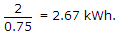 The electrical energy required to heat a bucket of water to a certain temperature is 2 kWh. If heat losses, are 25%, the energy input is