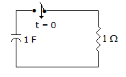 In figure, the capacitor is charged to 1 V. At t = 0 the switch is closed so that i = e-t. When i = 0.37 A, the voltage across capacitor is