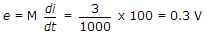 5. Two coils X and Y have self inductances of 5 mH and 10 mH and mutual inductance of 3 mH. If the current in coils X change at a steady rate of 100 A/s, the emf induced in coil Y is