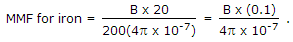 1. A magnetic circuit has an iron length of 20 cm and air gap length 0.1 cm. If μr = 200 then