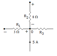 In the network of figure, the voltage drops across R1, R2, R3 are 6 V, 8 V and 12 V with polarities as shown. The value of R3 is