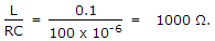 A two branch parallel tuned circuit has 100 Ω resistance and 0.1 H inductance in one branch and 10-6 F capacitor in the other. At resonance frequency, the dynamic resistance is