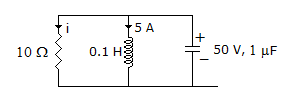 In the circuit shown in figure the inductor current and capacitor voltage are given at a time t. At this instant i is __________ A and