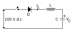 In the circuit of figure, the switch is closed at t = 0 with iL (0) = 0 and VC (0) = 0. In the steady state nc equals.