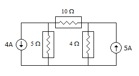 In the circuit shown in the given figure, power dissipated in the 5 Ω resistor is