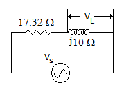 In the circuit shown the voltage Vs has a phase angle of __________ with respect to VL.