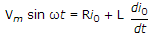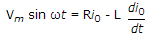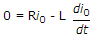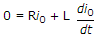 A single phase half wave controlled rectifier circuit is feeding on RL load. The circuit has a freewheeling diode. The input voltage is v = Vm sin ωt. If I0 is the load current during the conduction of freewheeling diode, the KVL equation during the conduction of free wheeling diode is