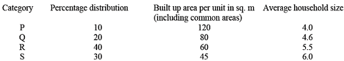 A group housing project spread over 20 hectares with FAR 1.5 has to accommodate different housing units in the following manner: